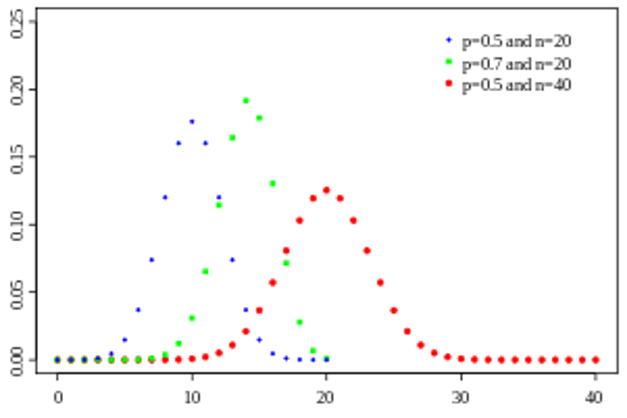 - Binomial distribution: the distribution of the number of n users who click on a button when browsing a web page.